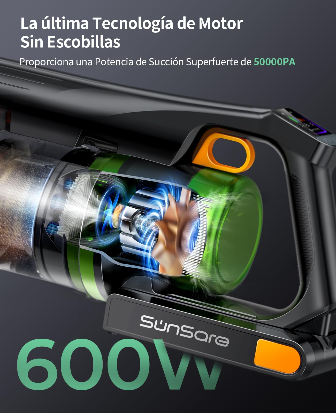 Zyvac Kabelloser Staubsauger 600W 50kPa – 65 Min Eco-Laufzeit, 1,8L Staubbehälter, LED-Display, Anti-Verhedderungs-Bürste, Für Böden Teppiche Auto